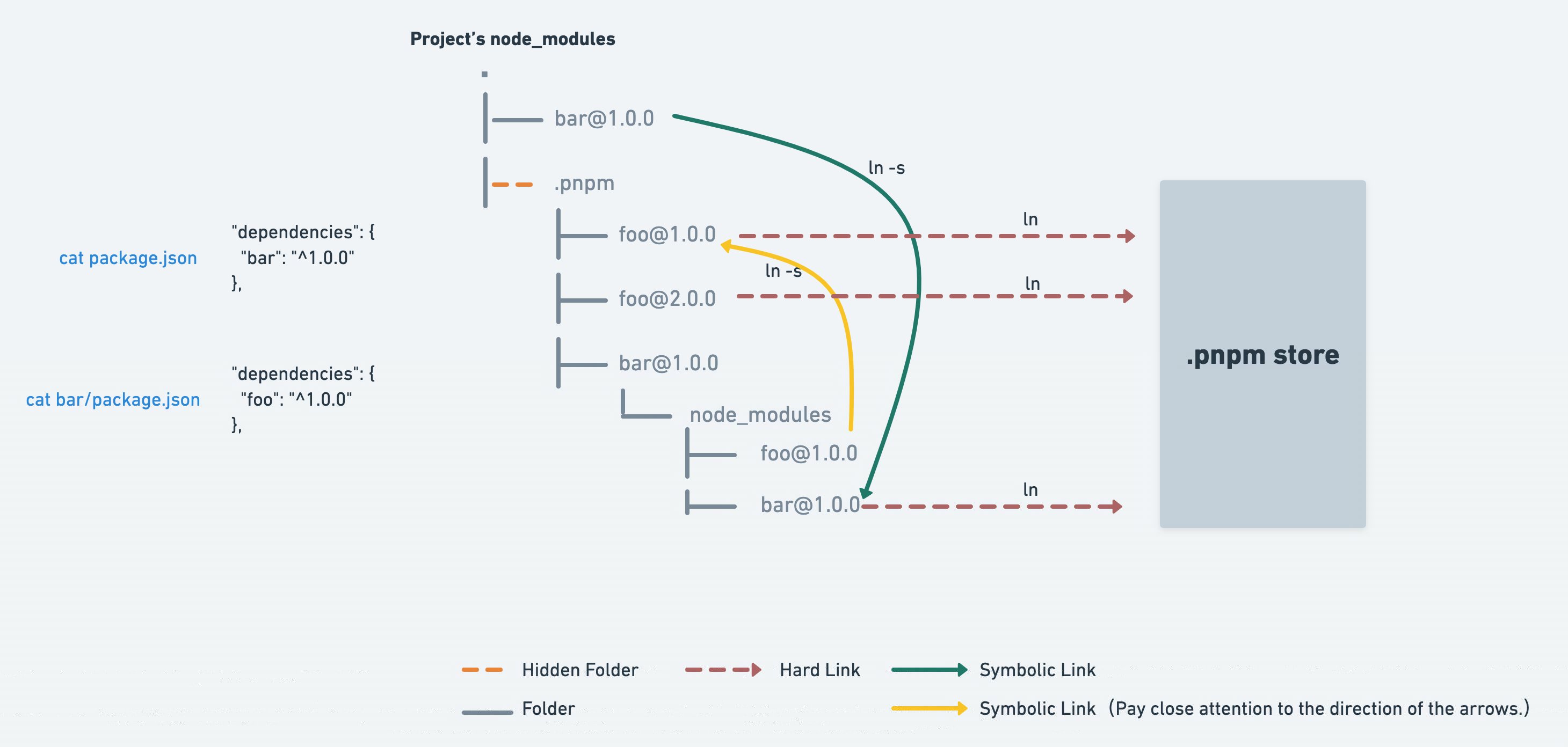 By default, pnpm uses symlinks to add only the direct dependencies of the project into the root of the modules directory. If you'd like more details about the unique node_modules structure that pnpm creates and why it works fine with the Node.js ecosystem, read: